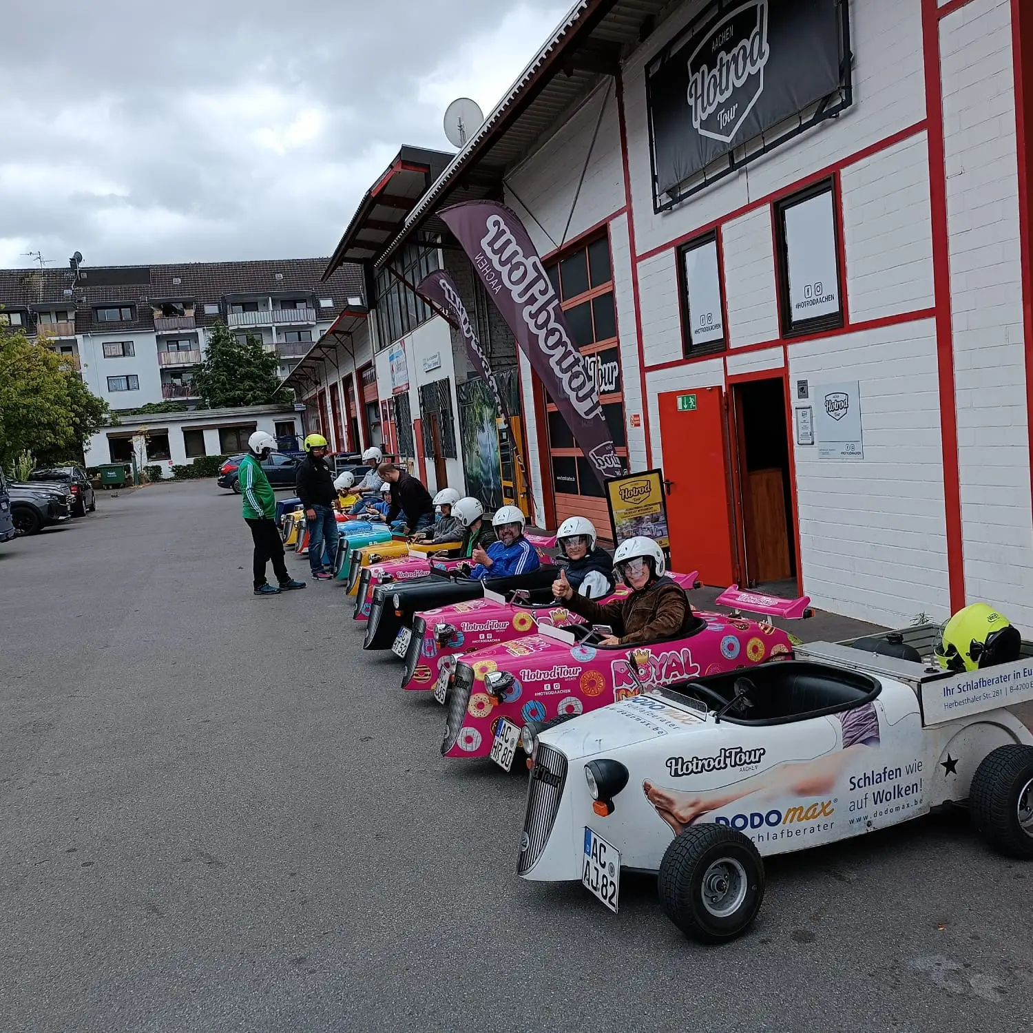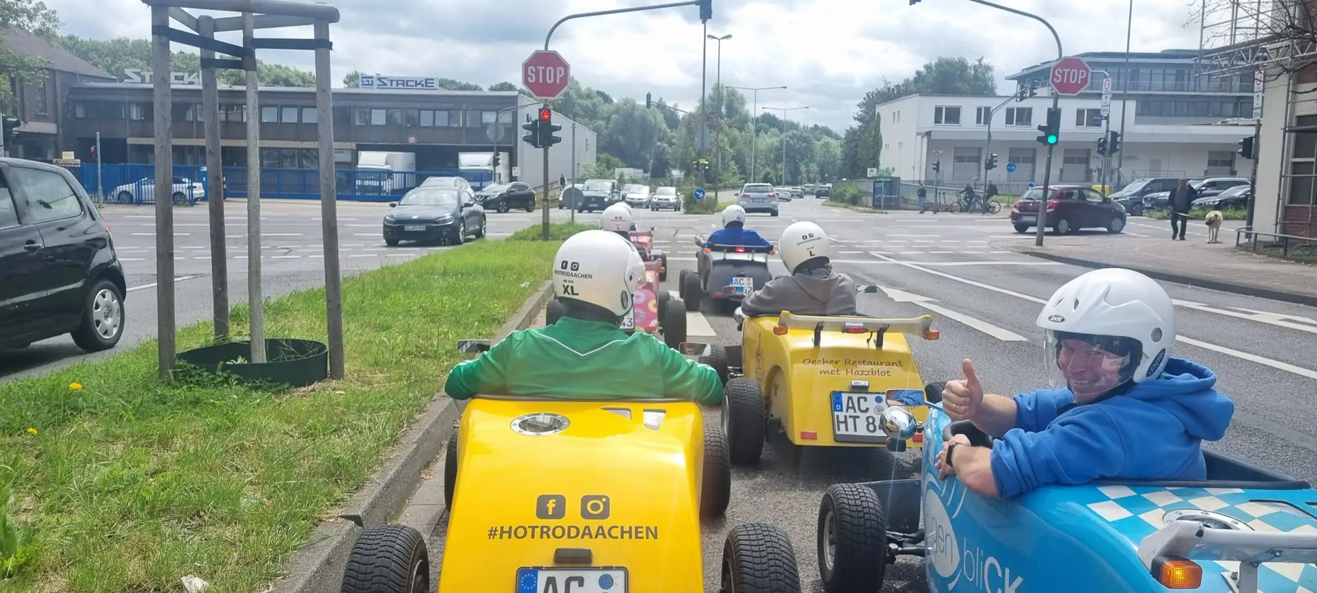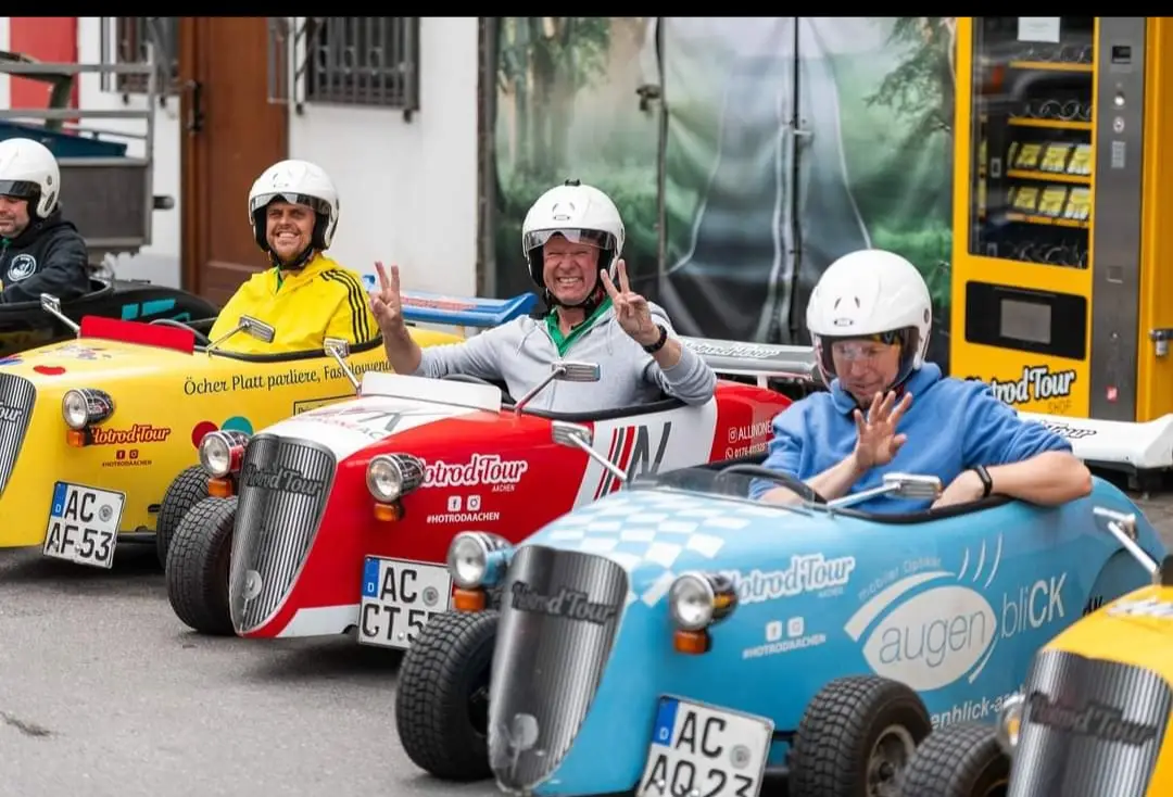 Die Gruppe startete mit einer einstündigen Tour durch die schöne Stadt Aachen. In den flotten Flitzern erkundeten sie die historischen Sehenswürdigkeiten und genossen den Fahrtwind in den Haaren.
