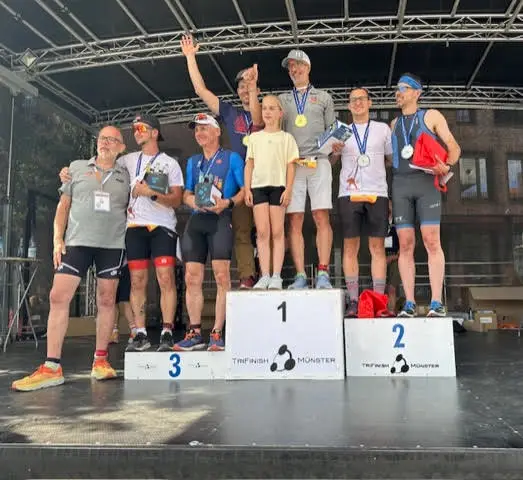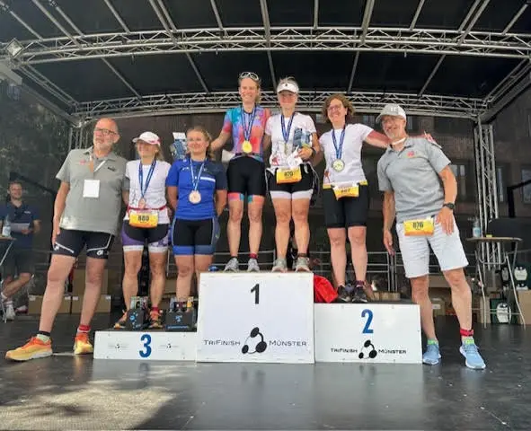 Bei der Siegerehrung erhielten die erfolgreichen Triathletinnen und Triathleten ihre wohlverdienten Medaillen und Urkunden, und ein Gruppenfoto wurde gemacht.