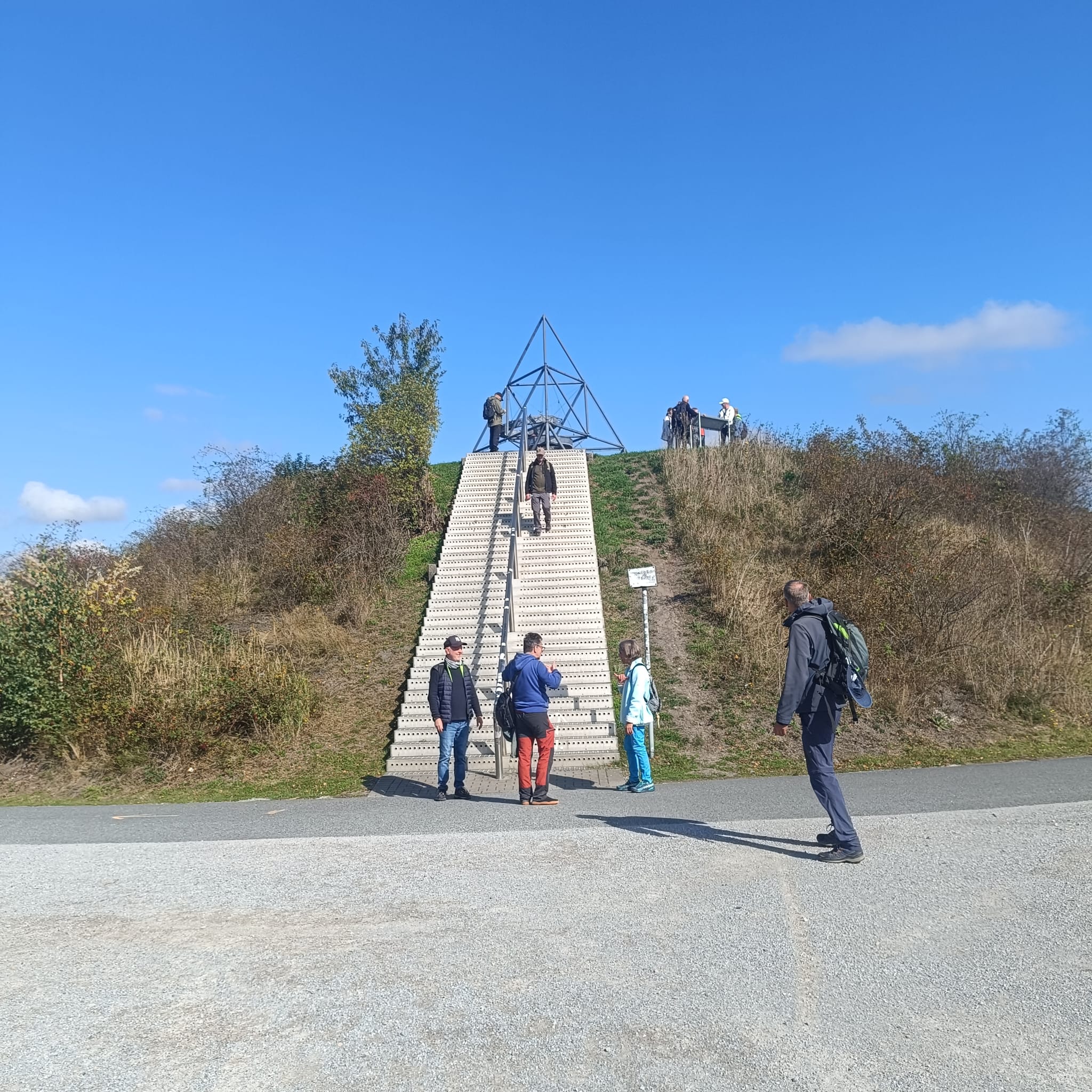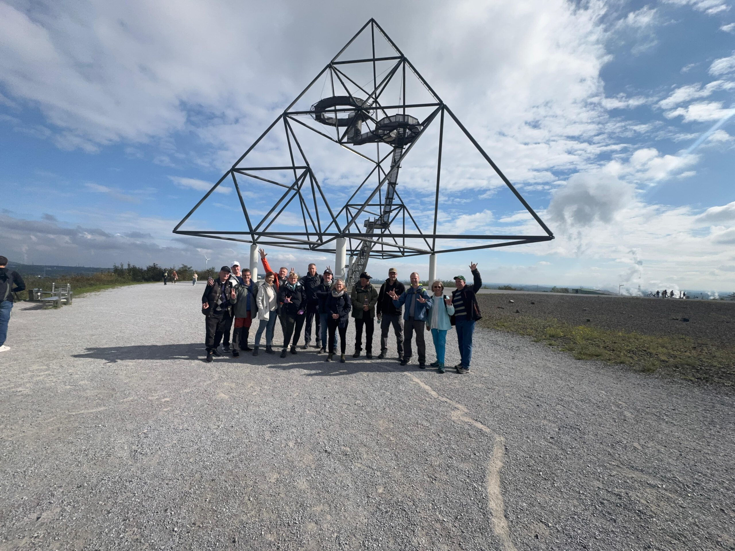 Am Samstag, den 27. September 2025, unternahmen insgesamt 14 Teilnehmerinnen eine Wanderung zum Haldenereignis Emscherblick in Bottrop-Boy. Wir trafen uns am Bahnhof Bottrop-Boy und wanderten von dort zur Halde mit dem Haldenereignis Emscherblick (Kurzform: Tetraeder).