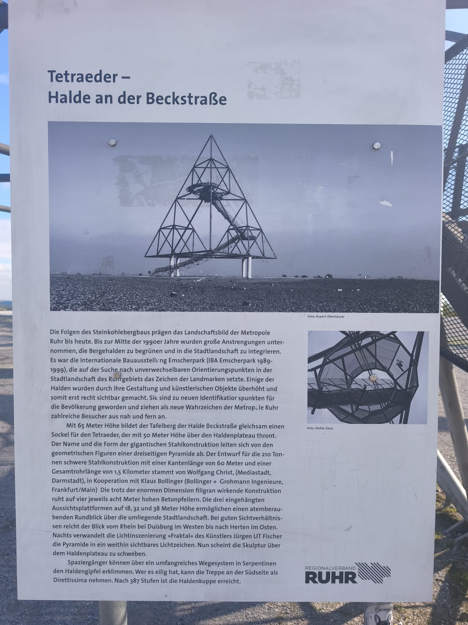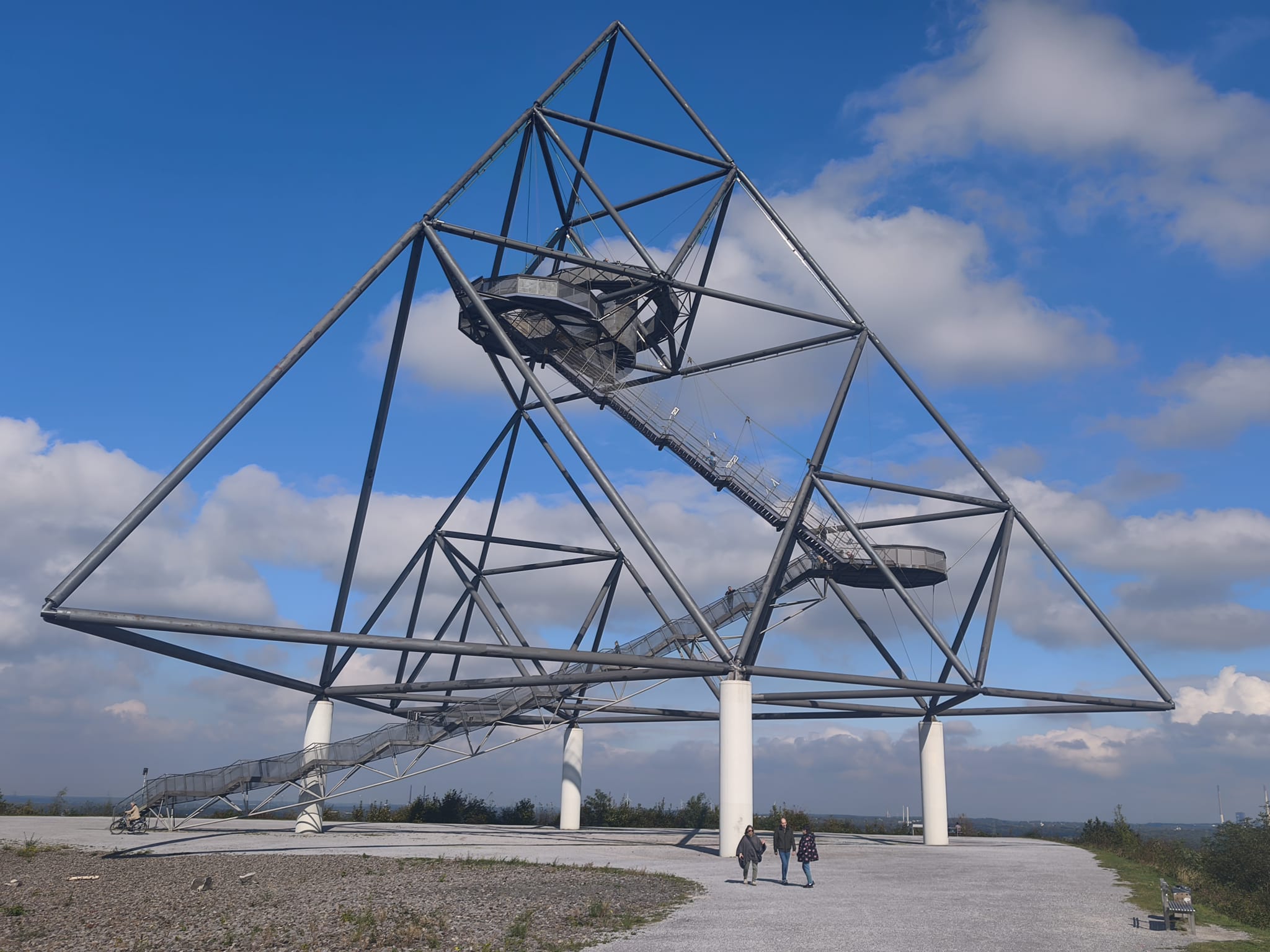 Der Tetraeder Bottrop ist eine beeindruckende dreiseitige Pyramide aus Stahl und zählt zu den meistbesuchten Sehenswürdigkeiten in Nordrhein-Westfalen. Mit einer Kantenlänge von 60 Metern beherbergt das Haldenereignis Emscherblick drei Aussichtsplattformen. Sie bieten atemberaubende Blicke über das Ruhrgebiet. Seit der Eröffnung am 3. Oktober 1995 hat das Tetraeder viele Besucher angezogen. Vom Gipfelplateau aus konnten wir in den Tetraeder hinaufsteigen. Es war ein wunderschöner Ausblick!