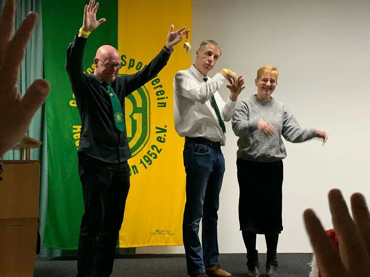 Als geladene Ehrengäste haben Frau Berger (Gehörlosenverband in Vest), Ralf Geerk (Gehörlosen-Sportverband NRW), Hermann Riekötter (Förderverein für hör- und hörsehbehinderte Menschen in VEST) und ca. 60 Besucher die Vorweihnachtsfeier im schönen weihnachtlich dekorierten Saal des GLZ teilgenommen.