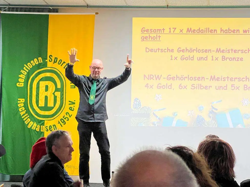 Eine Vorweihnachtsfeier fand am 16.12.2023 im Gehörlosenzentrum in Recklinghausen statt. Im Namen des Vorstands begrüßen wir Sie herzlich zu unserer Feier und haben 71-jähriges des Gehörlosen Sportvereins Recklinghausen.