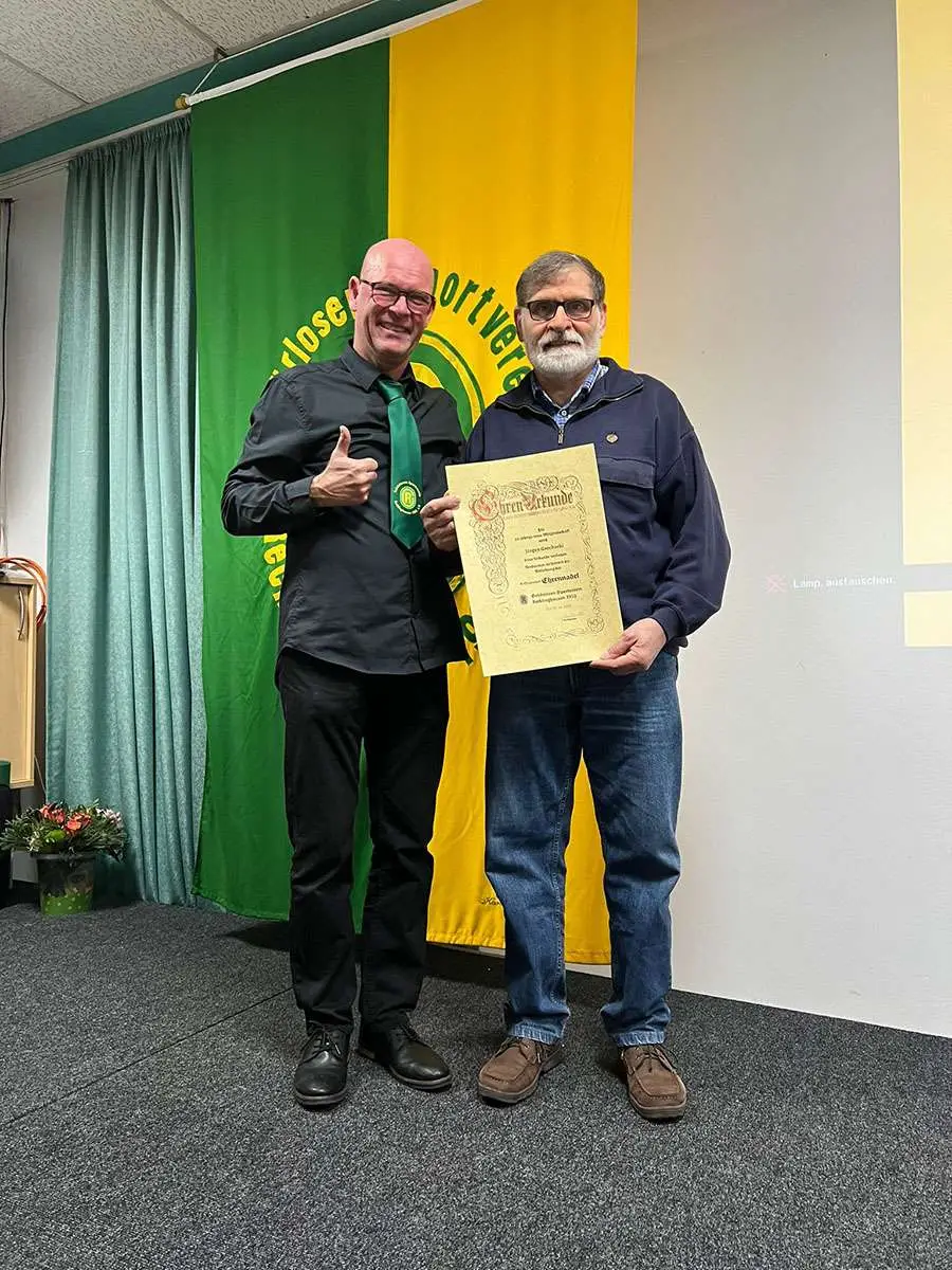Für die 50 jährige Mitgliedstreue war von den zu ehrenden Mitglieder Jürgen Grochocki anwesend. Für seine Treue erhielt er eine Ehrenurkunde und BrilliantEhrennadel. Für die 40 jährige Mitgliedstreue war von den 3 zu ehrenden Mitgliedern Frank Hellwig, Markus Völker und Christian Stern anwesend und erhielten eine Ehrenurkunde und goldene Ehrennadel. Ines Gocke erhielt für die 25-jährige Mitgliedstreue und eine Ehrenurkunde und silberne Ehrennadel.