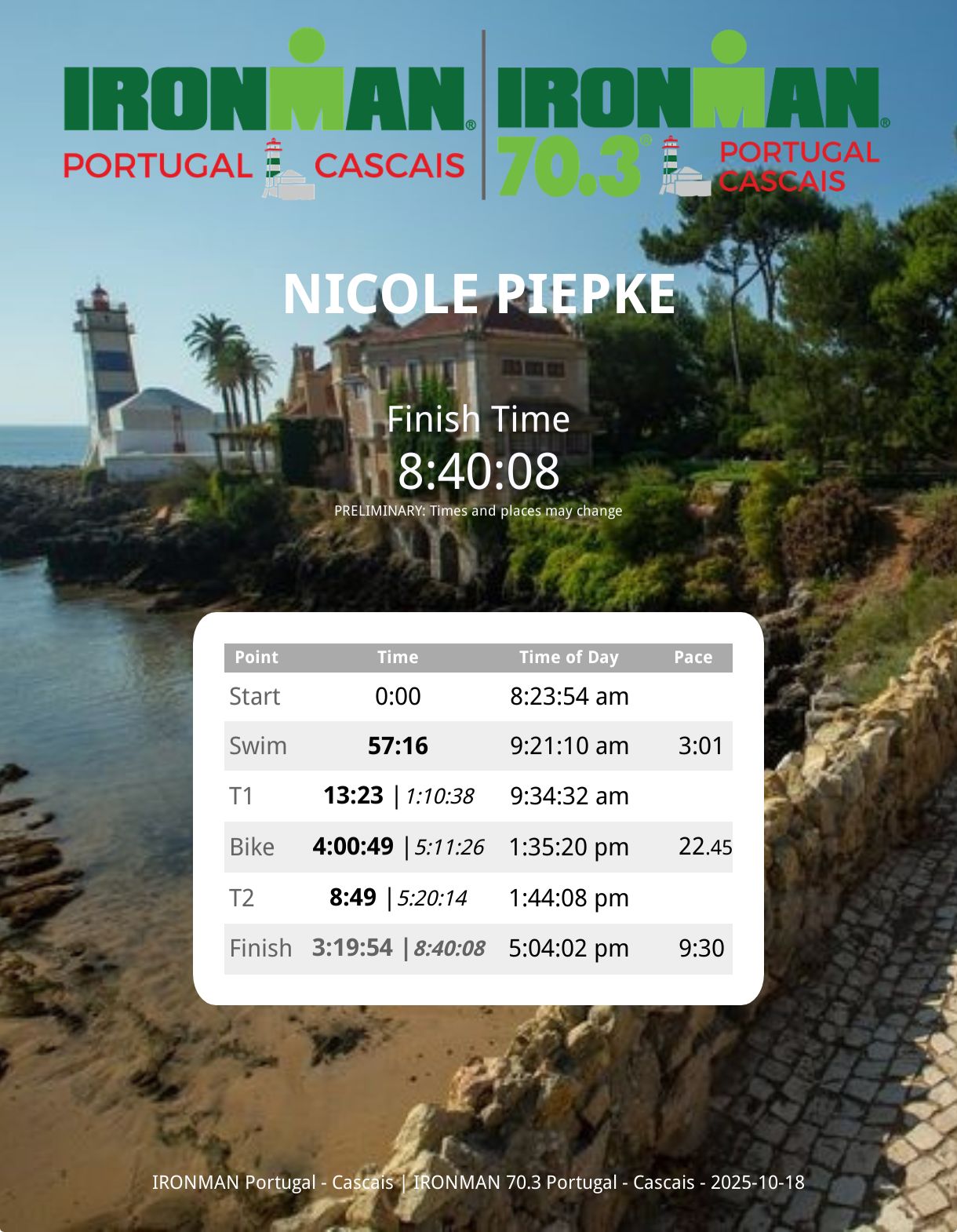 Am Wochenende vom 18. Oktober 2025 war ich beim Ironman 70.3 in Cascais /Portugal. Das war ein großes Erlebnis für mich.