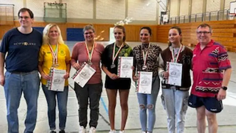 3 Damendoppel haben in einer Gruppe Jeder gegen Jeden gespielt.