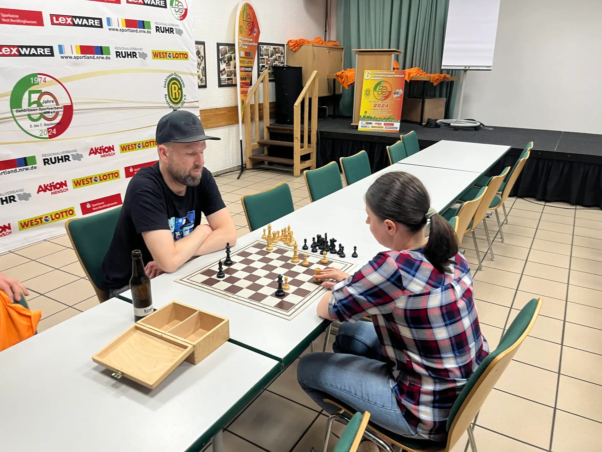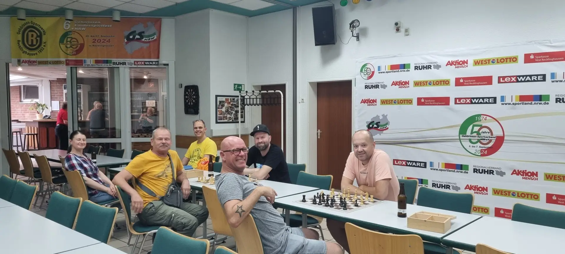 Am Freitag, den 19. Juli 2024, haben sechs Personen am Schachtreffen im Gehörlosenzentrum Recklinghausen teilgenommen. Es war bemerkenswert, dass sich eine Schachspielerin besonders hervorgetan hat. Alle zwei Wochen lädt das Zentrum zu einem offenen Schachtreffen ein. Egal ob Anfänger oder erfahrener Spieler – jeder ist herzlich willkommen! Einfach vorbeikommen und mitspielen!