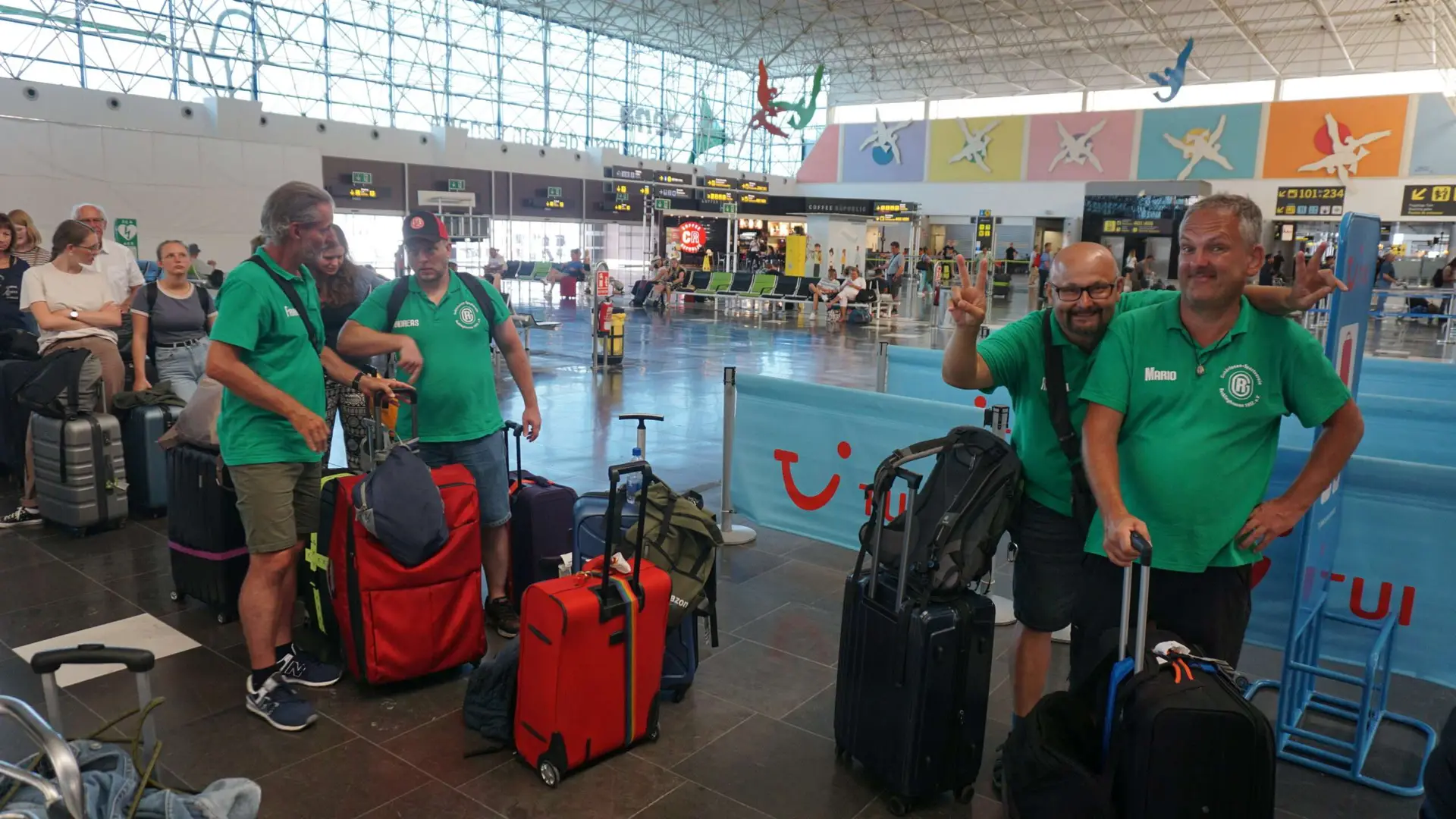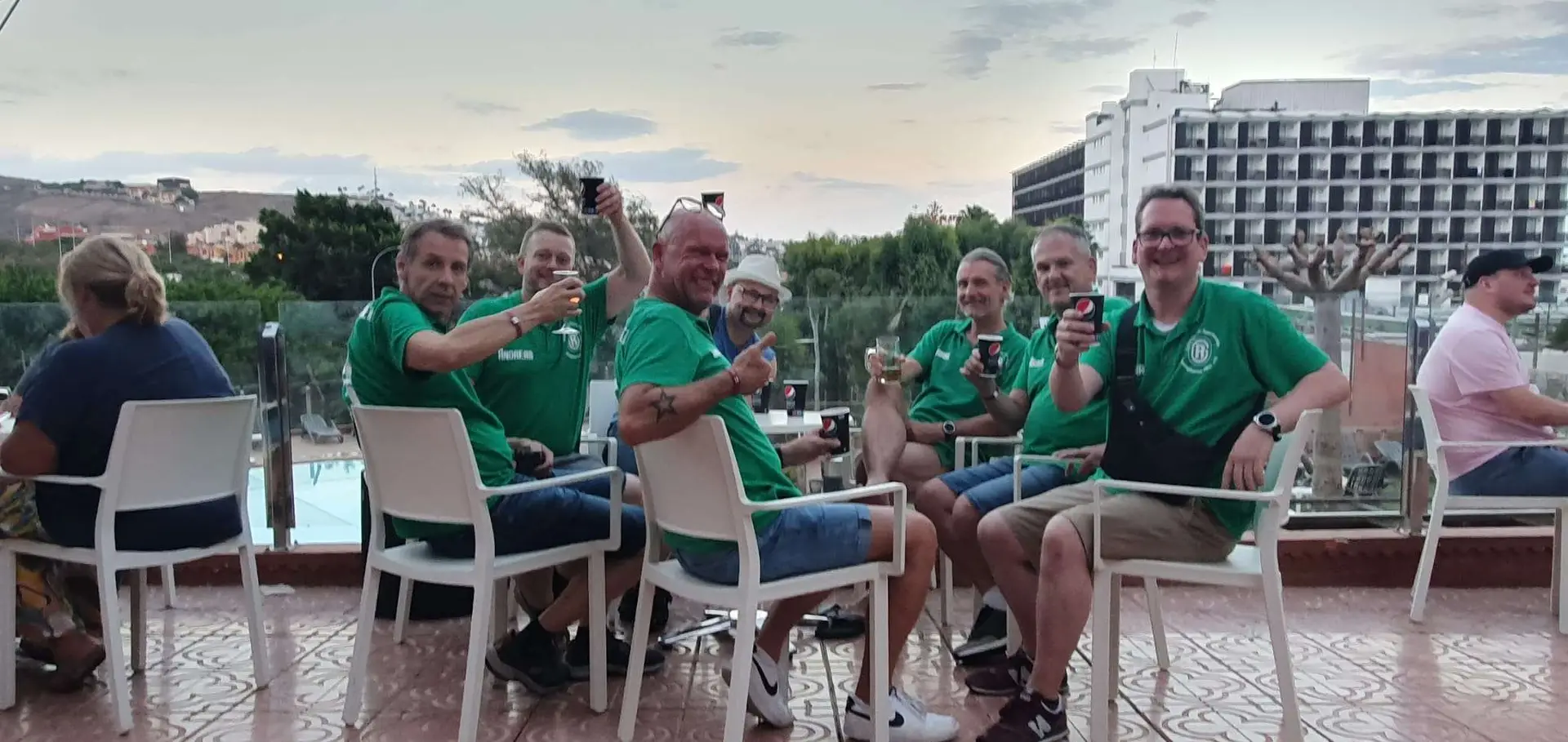 Vom 03. bis 10. September 2023 haben 7 Männer in  Gran Canaria / Spanien teilgenommen. Wir hatten  eine Überraschung für Christian Stern am Flughafen Düsseldorf, da er am Sonntag den  03. September Geburtstag hatte. Wir hatten  ein lustige Geschenk für ihn und  haben mit Bier geprostet. Wir sind  gemeinsam geflogen und in  Gran Canaria gelandet.  Mit Bus ging es  zum Hotel „Corona Roja“ (dt:  Rote Krone) in Punta de Maspalomas mit anschließendem Abendessen.