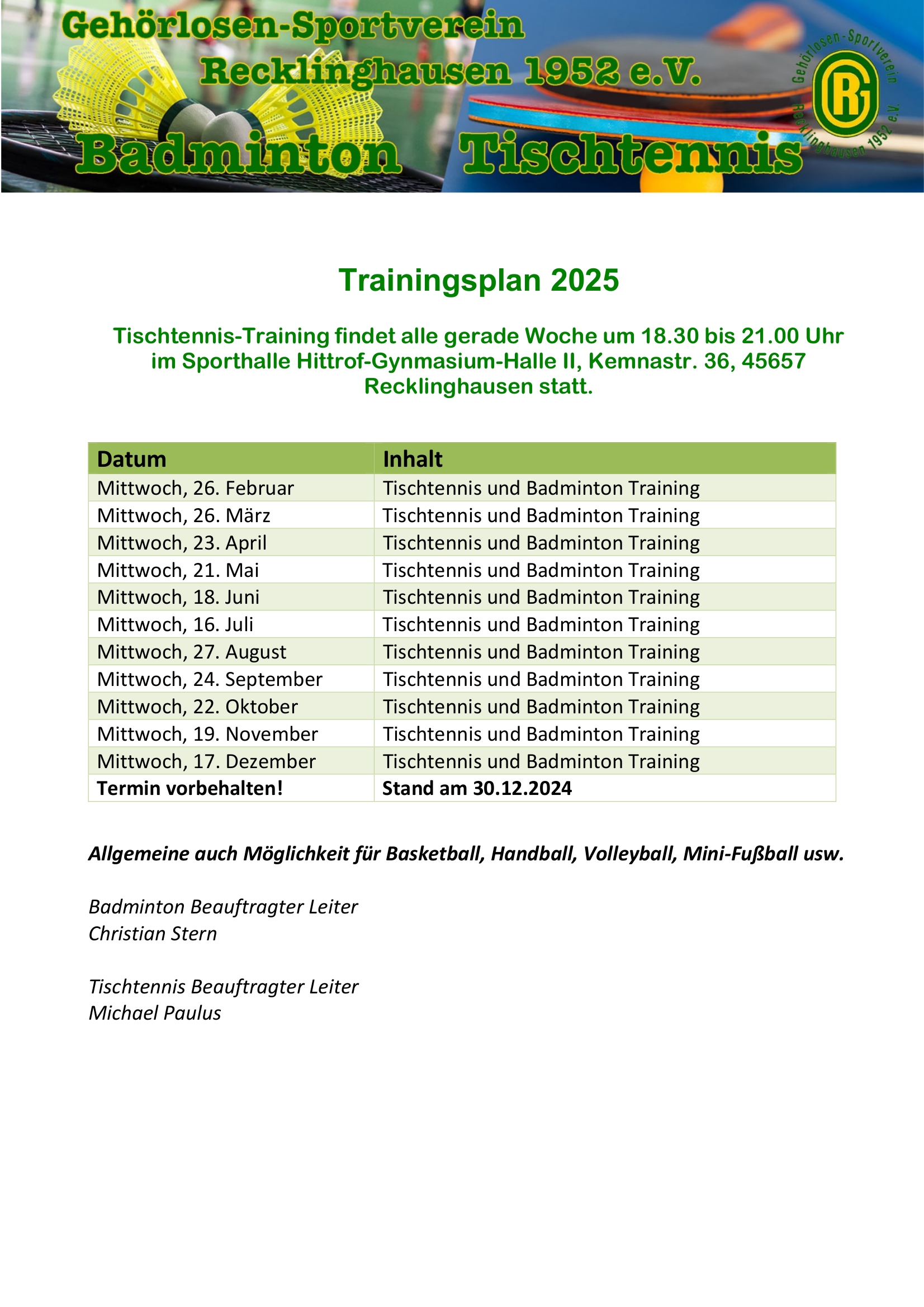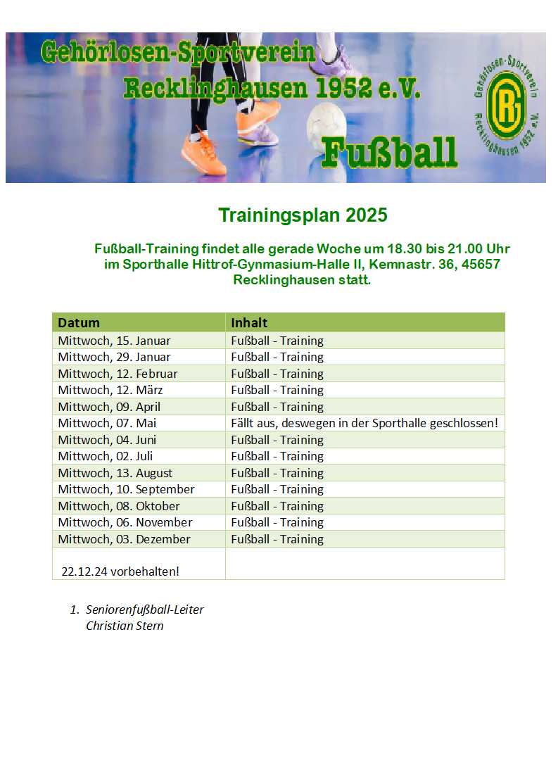 Alle ungerade Woche Freitag (Hier finden Sie ein Trainingsplan „PDF“)