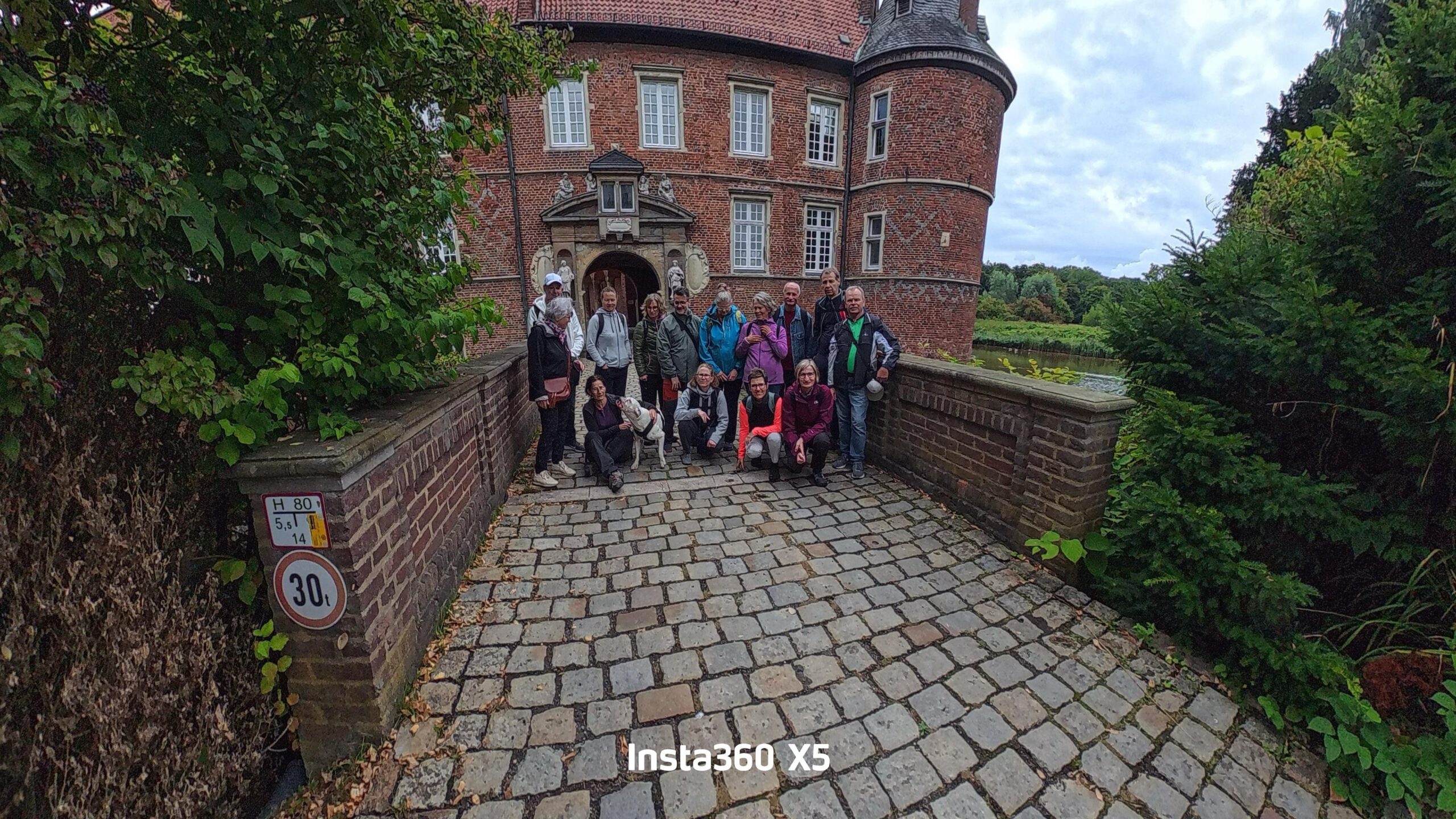 Unser Startpunkt war das Wasserschloss Herten am westlichen Rand der Hertener Innenstadt. Es liegt inmitten eines alten Landschaftsgartens und wurde erstmals 1376 urkundlich erwähnt. Seit 1962 steht das Hauptgebäude unter Denkmalschutz. Dort hat Ralf Geerk uns die Sieben-Schmerzen-Kapelle und die Bedeutung der „Sieben Schmerzen Mariens“ sehr anschaulich erklärt.