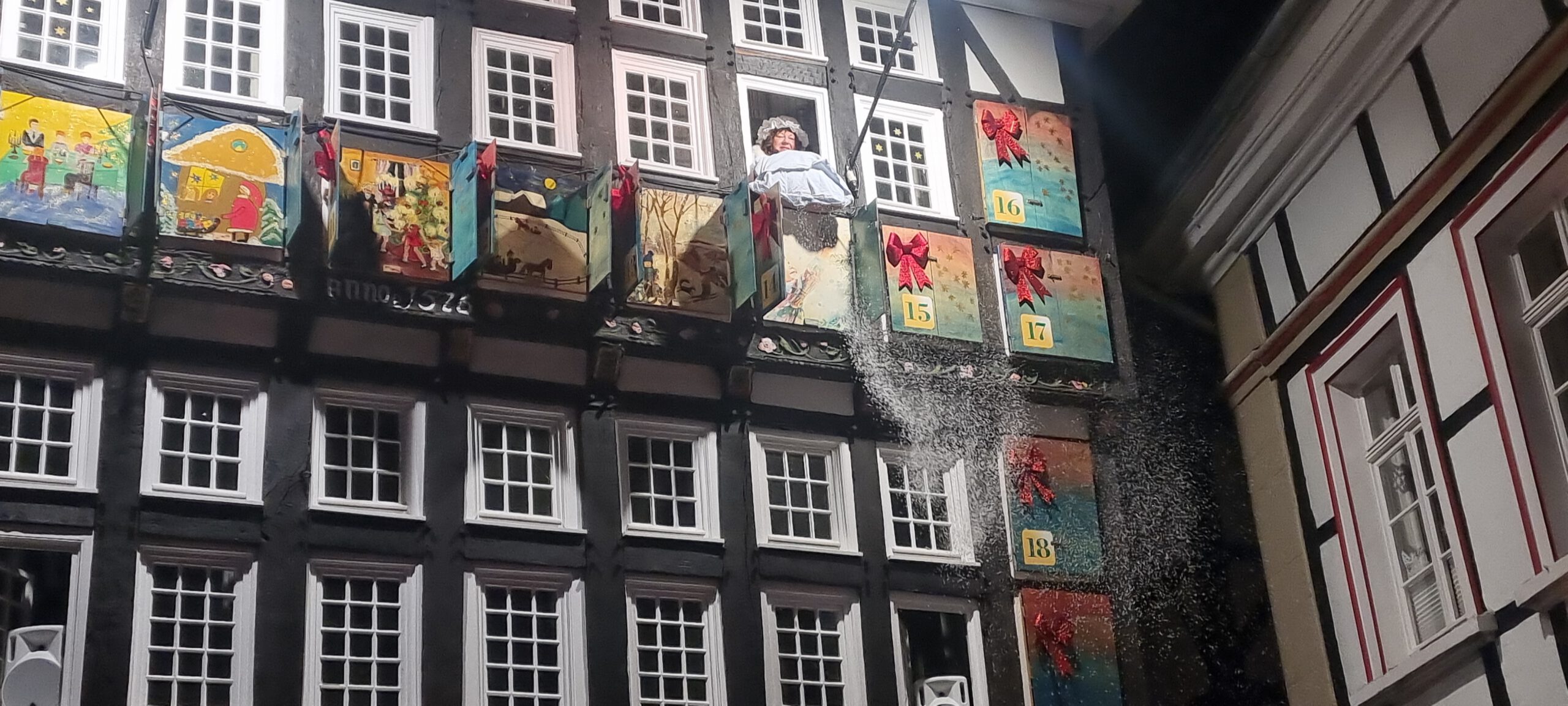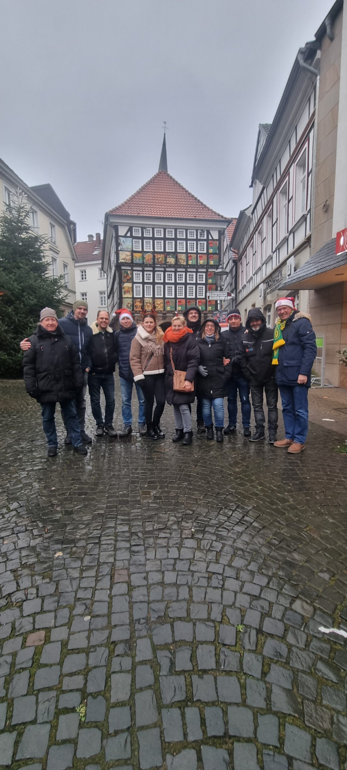 Am 14. Dezember 2024 trafen sich 13 Teilnehmer*innen um 13.30 Uhr in der Hattinger Altstadt. Dort begrüßte uns Christian Stern mit einem Glas Glühwein. Gemeinsam erkundeten wir vier verschiedene Standorte des Hattinger Weihnachtsmarkts.